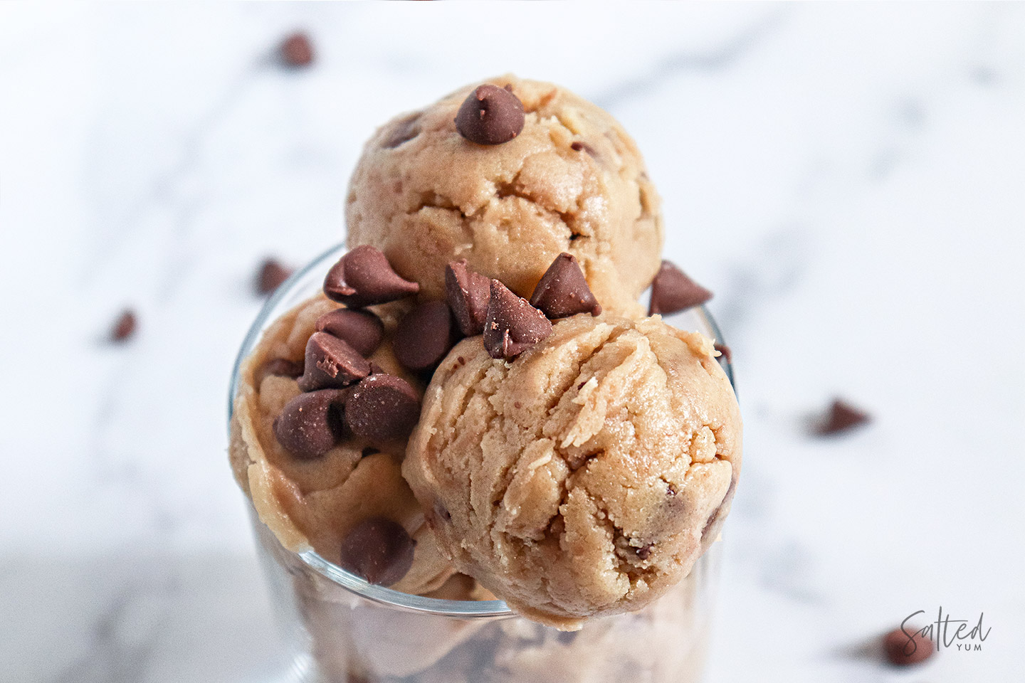 - Edible cookie dough does not have eggs in it like regular cookie dough so you can eat it without fear of salmonella.