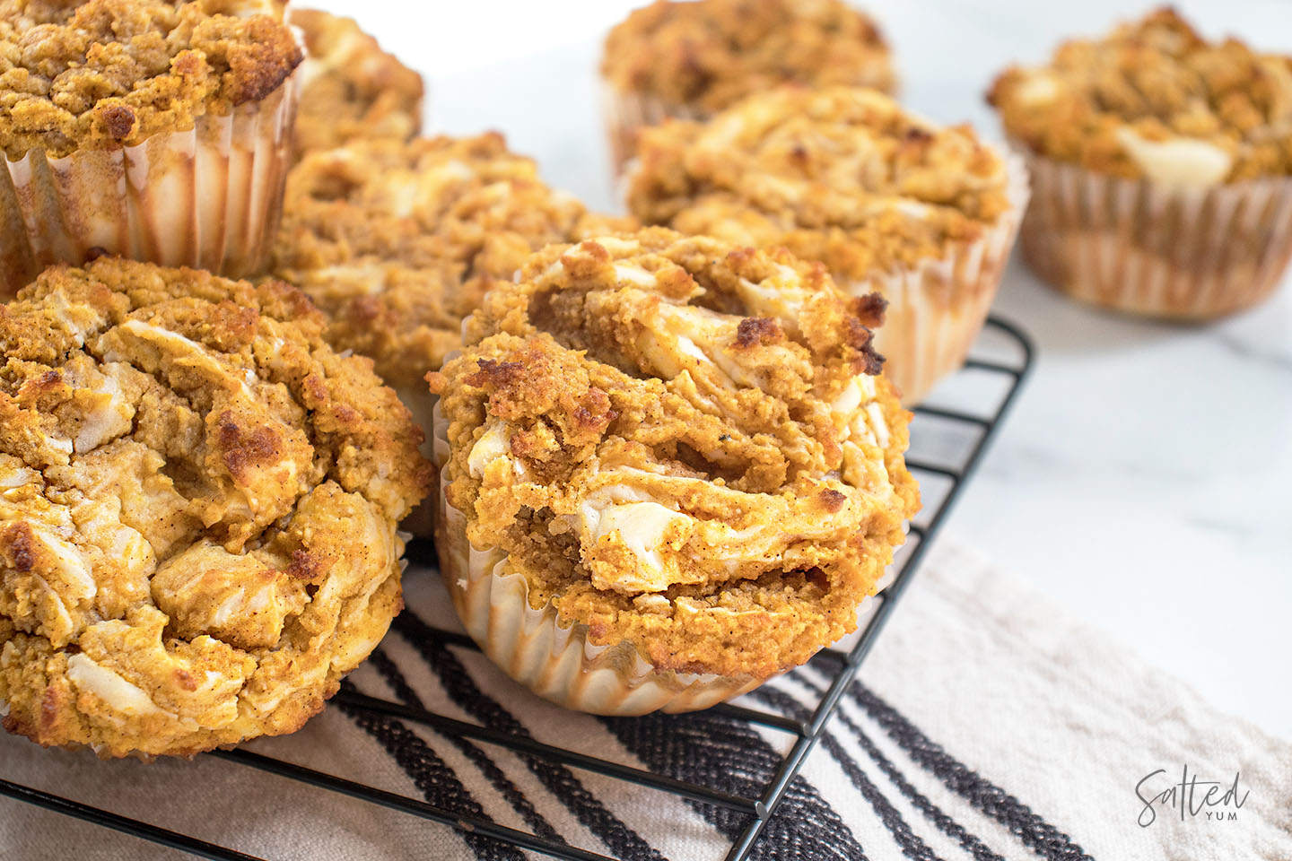 I am so excited about these keto pumpkin cheesecake muffins!! Fluffy pumpkin muffins swirled with cream cheese.